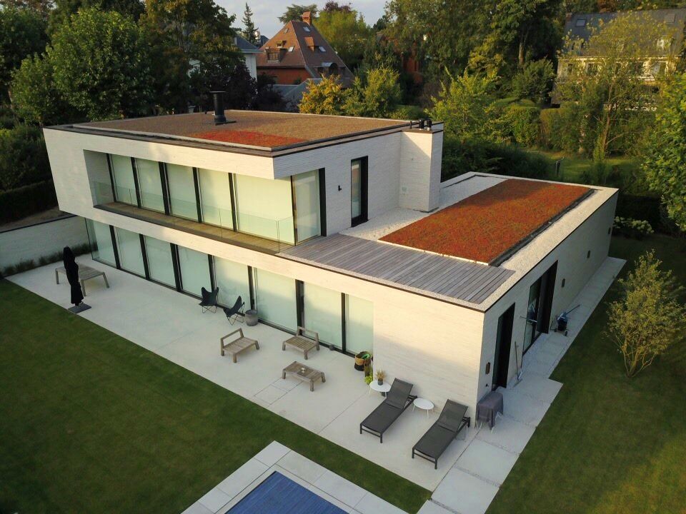 Maison Écologique à Bruxelles : Création d’un toit végétalisé avec intégration de panneaux solaires, offrant un cadre de vie durable et respectueux de l’environnement.