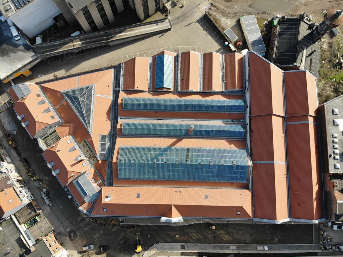 Centre d’Affaires à Liège : Rénovation complète de la toiture d’un complexe commercial, intégrant des systèmes d’étanchéité avancés.